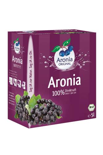 Mit unserem Bio Aronia Direktsaft erleben Sie den Geschmack von sonnengereiften Aroniabeeren aus 100% deutschem Anbau. Der fruchtig-herbe Direktsaft stammt aus erster Pressung und enthält lt. Gesetz keinerlei Zusatzstoffe wie beispielsweise Konservierungs-, Farb- und Aromastoffe. Aronia Direktsaft von Aronia ORIGINAL steht nicht nur für hohe Qualität, sondern auch für geprüfte naturnahe Landwirtschaft in Deutschland. Ausgewählte Rohstoffe und eine echte Verbundenheit zu regionalen Lieferanten garantieren kurze Transportwege und eine herausragende Produktqualität. Damit unsere Säfte nicht nur intensiv schmecken, sondern auch die Fülle ihrer natürlichen Inhaltsstoffe behalten, werden unsere Aroniabeeren nur ein einziges Mal gepresst. Hierbei entsteht ein Direktsaft, oder auch Muttersaft genannt, der außer besten Bio-Aroniabeeren nur noch Liebe enthält. Im praktischen 5L Bag-in-Box-System steckt unsere Aronia Direktsaft in einem BPA-freien Kunststoffbeutel mit integriertem Zapfhahn und wird unter Ausschluss von Sauerstoff aufbewahrt – so bleibt der Saft auch ungekühlt geöffnet bis zu drei Monate frisch und lecker.