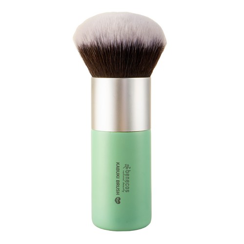 Der Kabukipinsel eignet sich vor allem zum großflächigen Auftragen von losem Puder, aber auch von gepressten Pudern. Die besonders dicht gebundenen, hochwertigen Synthetikhaare sind an der Spitze abgerundet und können viele Pigmente aufnehmen, wodurch eine sehr gute Deckkraft erzielt wird. Der Stiel besteht aus lackiertem, FSC-zertifiziertem Birkenholz, die Zwinge aus recycelbarem Aluminium. Der Kabuki ist sehr langlebig, hautfreundlich und auch bei Tierhaarallergie bestens geeignet.