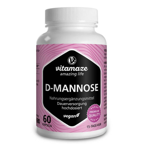 - 500 mg D-Mannose pro Kapsel, das entspricht einer Tagesdosis von 2000 mg (4 Kapseln)