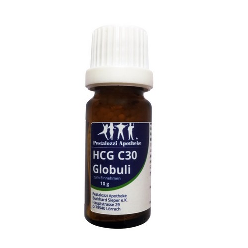 10 g Globuli enthalten HCG Dil. C30 0,1 g (Humanes Choriongonadotropin, Ethanol 90 % V/V) Saccharoseglobuli Gr. 3 (Zucker).