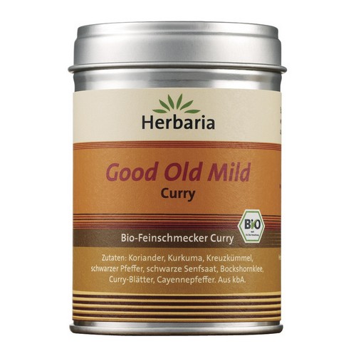 Herbaria Good Old Mild Curry ist eine klassische Bio-Curry-Mischung mit bekannt typischem Curry-Geschmack für die perfekte Currywurst, ein leckeres Curry-Huhn oder Geschnetzeltes. Mit ausgewählten Zutaten wie Kurkuma, Kreuzkümmel, Koriander und schwarzer Senfsaat. Das Good Old Mild Curry bietet auch die perfekte Basis für leckere indische Curry-Spezialitäten wie beispielsweise Kichererbsencurry, Palak Paneer, Korma oder Malai Kofta. Der Curry besitzt eine milde Schärfe (Schärfegrad 3 von 10) und ist damit für jeden geeignet.