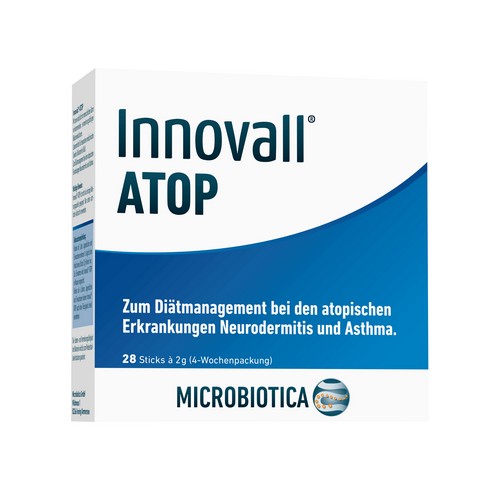 Innovall® ATOP enthält zwei spezifische, im menschlichen Darm vermehrungsfähige Bakterienstämme zum Ausgleich der Dysbalance des Mikrobioms bei den atopischen Erkrankungen Neurodermitis und Asthma. Die Mengenverhältnisse und Dosierung der speziell für diesen besonderen Anwendungsbereich ausgewählten Bakterienstämme sind so aufeinander abgestimmt, dass sie das gastrointestinale Mikrobiom und damit auch die Symptome bei Neurodermitis und Asthma positiv beeinflussen. Dies ist durch klinische Daten belegt.
