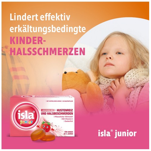 Kinder werden deutlich häufiger krank als Erwachsene. Hauptsächlich verantwortlich ist dafür das noch nicht vollständig ausgebildete Immunsystem des Kindes. Im Alltag sind die Kinder dann einer Menge von Ansteckungsmöglichkeiten ausgesetzt. Mit isla junior Pastillen können Sie Ihr Kind im Falle einer Erkältung unterstützen.