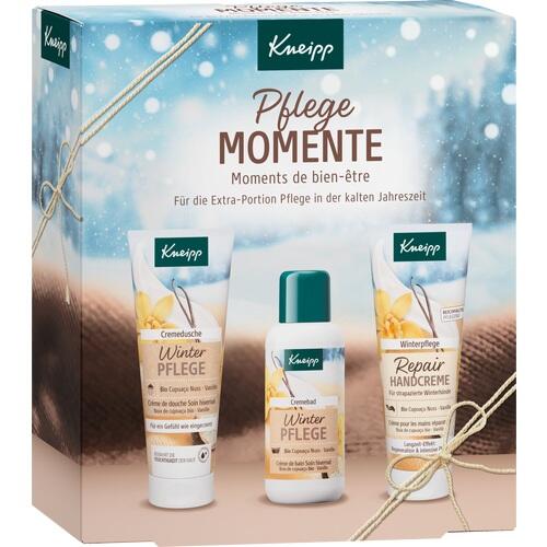 Unser Kneipp® Pflegemomente Set eignet sich ideal als kleine Aufmerksamkeit in der Winterzeit und sorgt durch seinen angenehm warmen, pflegenden & luxuriösen Duft für Gemütlichkeit im Winter.