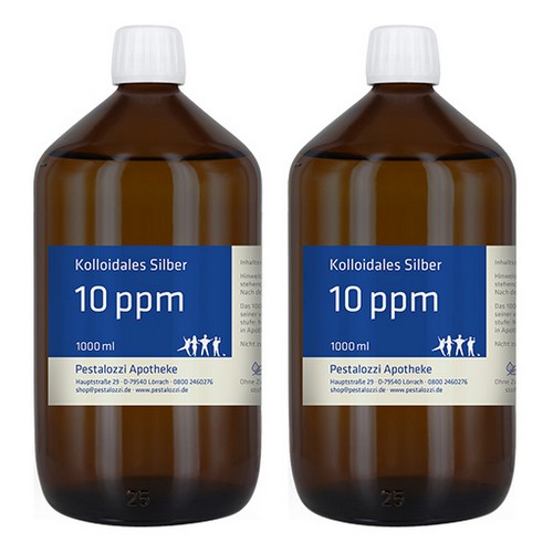 2 x 1000 ml "Kolloidales Silber - Pestalozzi Apotheke" in lichthemmender Apothekerbraunglasflasche