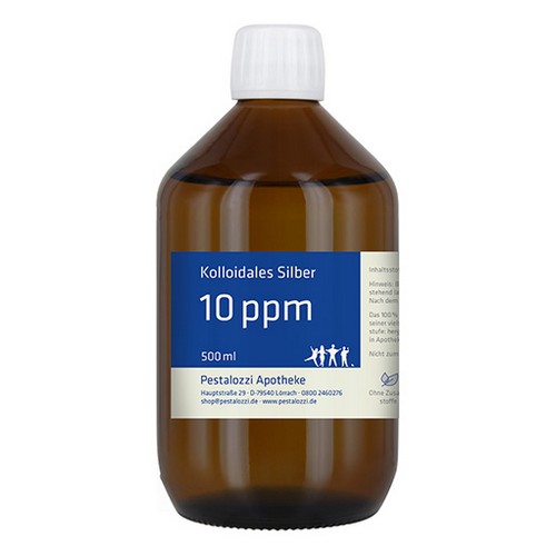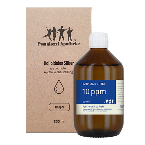 Das kolloidale Silber 10 ppm wird mit hochreinem destillierten Wasser unter qualifizierten Laborbedingungen frisch hergestellt und in einer dunklen Glasflasche geliefert. Die Herstellung erfolgt in der Apotheke unter überwachten Laborbedingungen. Das kolloidale Silber wird auf elektrolytischem Wege mit Hilfe eines entsprechenden Generators hergestellt. Dabei werden aus 99,99% reinem Silber kleinste Partikel gebildet und in destilliertem Wasser verteilt. Wir arbeiten dabei ohne Einsatz von Zusatzstoffen. Bitte beachten Sie: Kolloidales Silber ist kein Arzneimittel und daher auch ohne Angabe einer Indikation. Aus rechtlichen Gründen bieten wir daher das kolloidale Silber nur für technische Zwecke an. Nicht zum Einnehmen.
