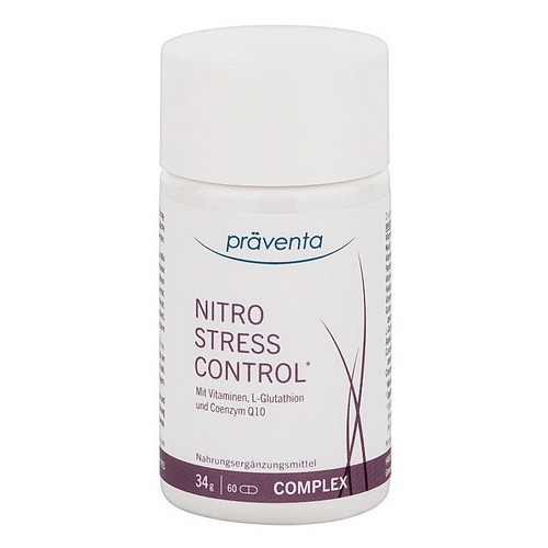 Nitro Stress Control ist ein Kombinationspräparat mit Vitamin B12 in hoher Dosierung, mit reduziertem L-Glutathion, Alpha-Liponsäure und Coenzym Q10 sowie ausgewählten Vitaminen und Pflanzenstoffen.