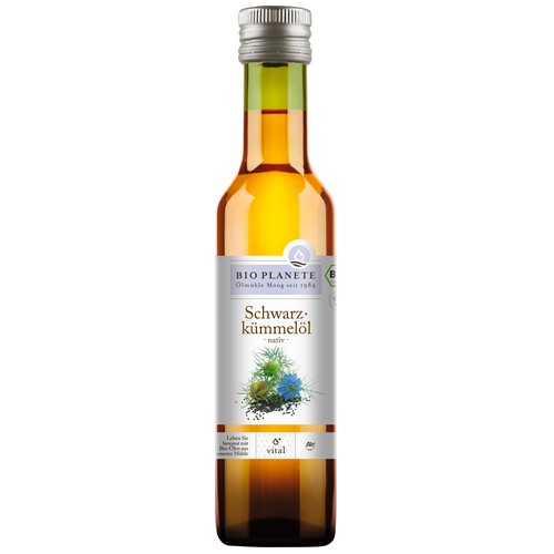 Erste kalte Pressung. Reich an mehrfach ungesättigten Fettsäuren. Das scharfwürzige Öl aus Schwarzkümmelsaat (Nigella sativa) ist in orientalischen Gerichten und Salatdressings durch seinen einzigartigen Geschmack und den hohen Anteil an mehrfach ungesättigten Fettsäuren sehr beliebt.