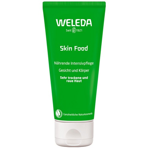 Weleda Skin Food ist eine natürliche Basispflege für die ganze Familie – besonders bei trockener, rauer und spröder Haut. Die wirksame Komposition mit Auszügen aus Stiefmütterchen, Kamillen- und Calendulablüten hat traditionell eine hautberuhigende Wirkung. Weleda Skin Food wirkt harmonisierend auf die Hautstruktur und eignet sich auch für besonders trockene Haut, zum Beispiel an Füßen, Händen und Ellenbogen.